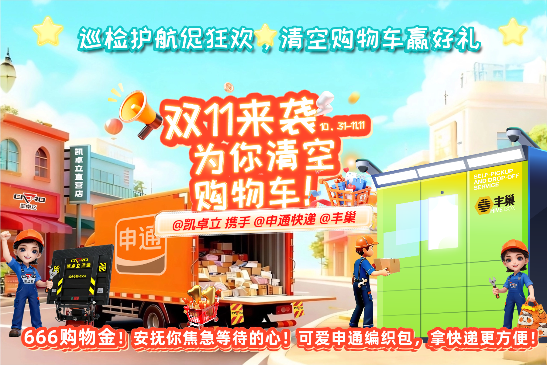 清空購物車迎好禮!凱卓立 × 申通 × 豐巢雙十一巡檢護(hù)航,促狂歡。 親愛的 “剁手黨” 們,雙十一的快遞是不是已經(jīng)讓你忍不住刷了八百遍物流信息?別慌!為了讓你順順利利拿到每一個(gè)包裹,凱卓立攜手申通快遞、豐巢,開啟雙十一巡檢護(hù)航促狂歡活動(dòng),從物流運(yùn)輸?shù)侥┒私桓叮虨槟愕陌?“保駕護(hù)航”!